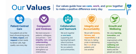 We work together as one team, supporting and learning from each other to achieve the best outcomes for our patients and communities.